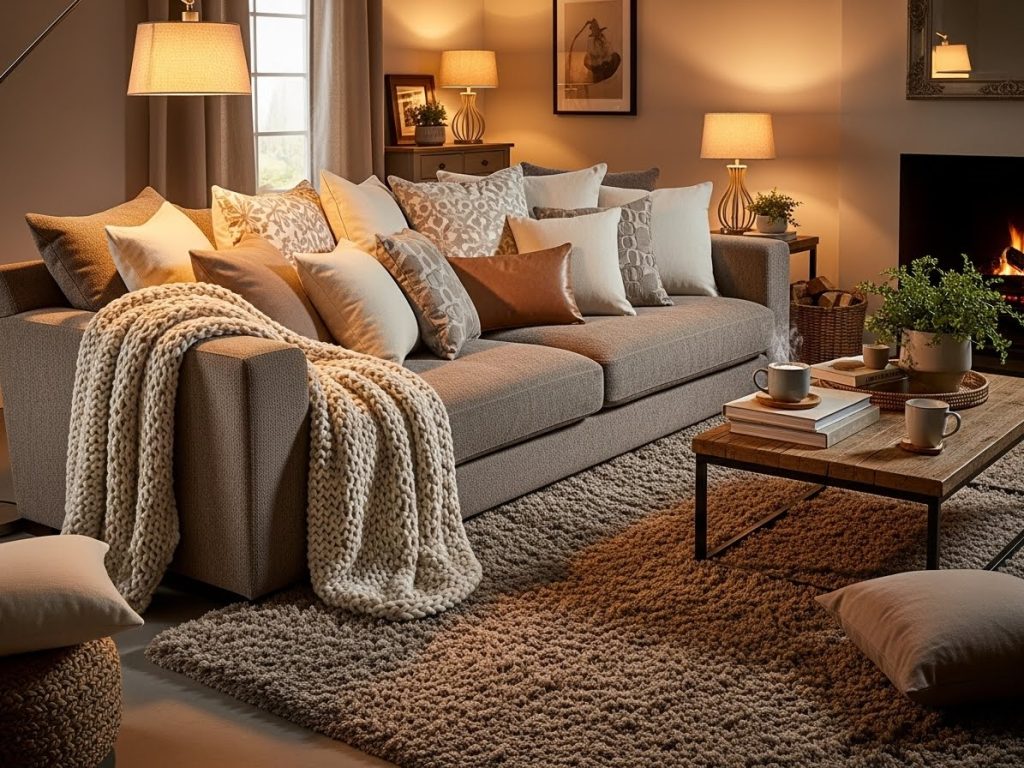 Em vez de mudar tudo de uma vez, você pode começar pequeno. Troque capas de almofada, adicione uma manta diferente ou mude o tapete da sala.